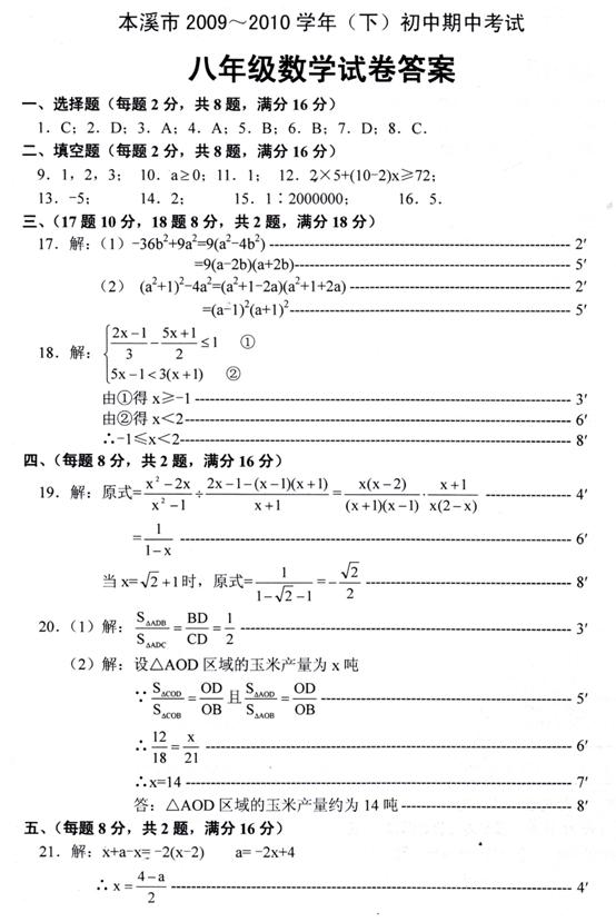 9.小阳发现电线杆AB的影子落在土坡的坡面CD和地面BC上,量得CD=8米,BC=20米,CD与地面成30O角,且此时测得1米杆的影长为2米,则电线杆的高度为