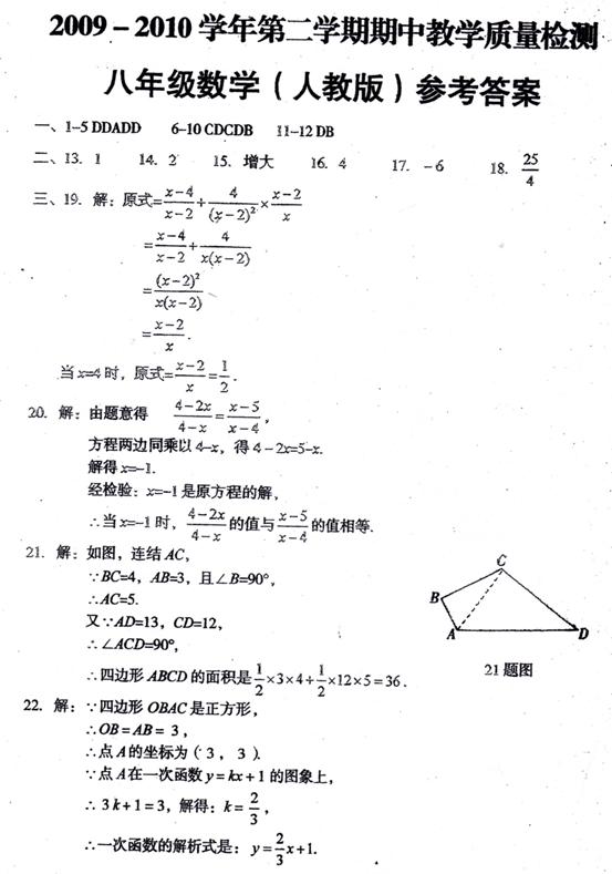 21、(本题9分)如图,四边形ABCD中,AB=3,BC=4,CD=12,AD=13,且