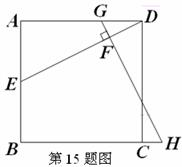 15.如图,已知正方形ABCD的边长为2,E是AB的中点,F是ED上任意一点,过F作ED的垂线,交AD于G,交BC的延长线于H,则线段GH的长为 .