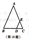 18.如图,△ABC中,AB=AC,D为BC上一点,过点D作DE//AB交AC于点E,