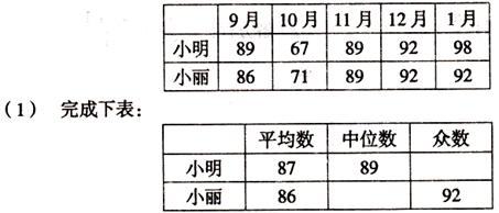本学期,小明和小丽五次数学测验的成绩如下表(单位:分):