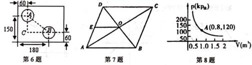 8.某气球充满一定质量的气体后,当温度不变时,气球内的气体的气压P(kPa)是气体体积V(m