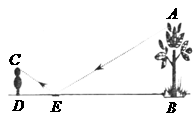 10.为了测量校园内水平地面上一棵不可攀的树的高度,学校数学兴趣小组做了如下的探索:根据《科学》中光的反射定律,利用一面镜子和一根皮尺,设计如下左图所示的测量方案:把一面很小的镜子放在离树底