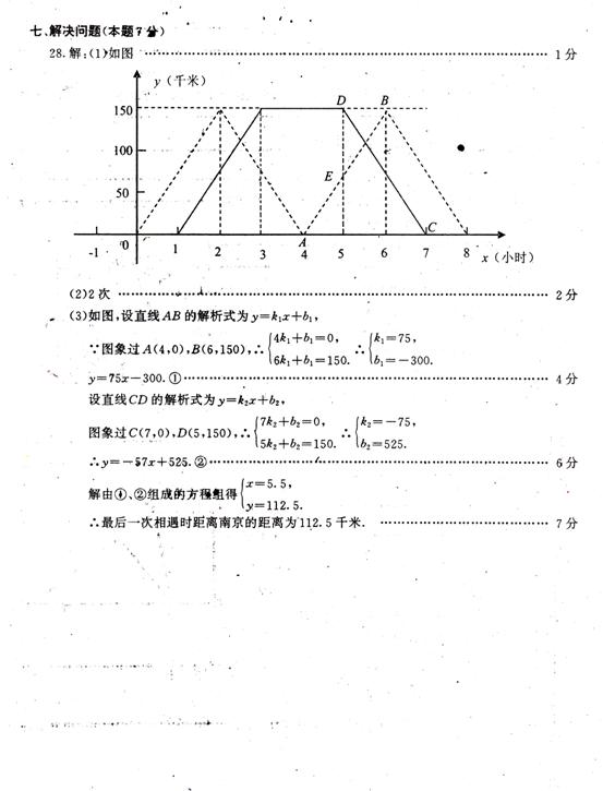 28.某公交公司的公共汽车和出租车每天以相同的速度从南京出发往返于南京和上海两地,出租车比公共汽车多往返一趟,如图表示出租车距南京的路程y(单位:千米)与所用时间x(单位:小时)的函数图象.已知公共汽车比出租车晚1小时出发,到达上海后休息2小时,然后按原路原速返回,结果比出租车最后一次返回南京早1小时.