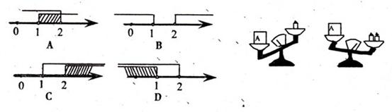 6. 如图,天平右盘中的每个砝码的质量都是lg,则物体A的质量m(g)的取值范围,在数轴上可表示为 ( )