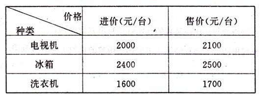 (1)在不超出现有资金的前提下,若购进电视机的数量和冰箱的数量相同,洗衣机数量不大于电视机数量的一半,商场有哪几种进货方案?