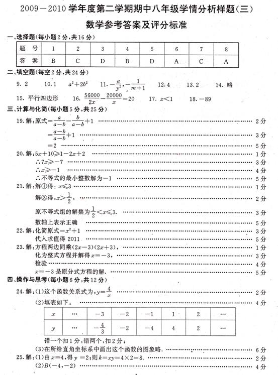 24.已知y是x的反比例函数,下表给出了x与y的一些值:
