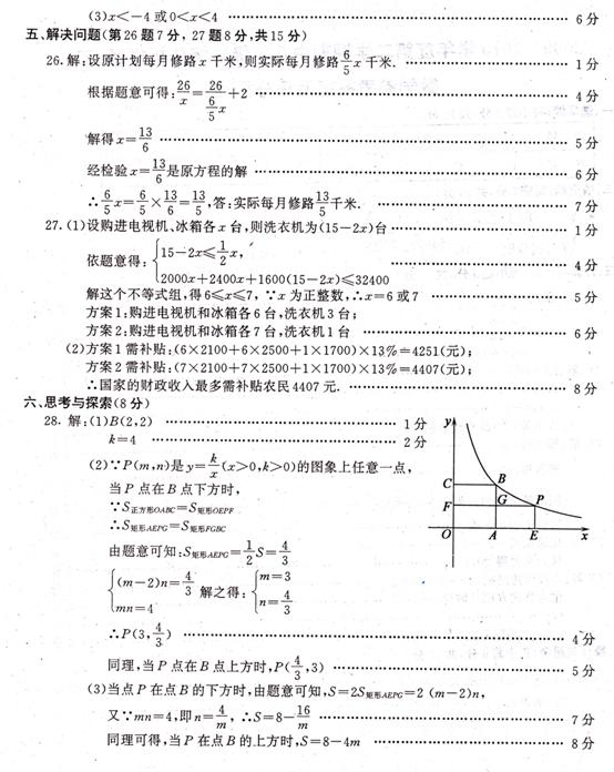 27.某家电商场计划用32400元购进“家电下乡”指定产品中的电视机、冰箱.洗衣机共15台.三种家电的进价和售价如下表所示: