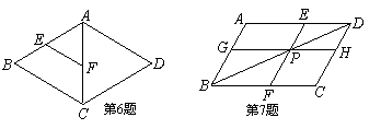 7.如右上图,在菱形ABCD中,E,F分别是AB,AC的中点,如果EF=2,那么菱形ABCD的周长是…………………………………………………………………………………… [ ]