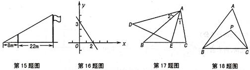 15.如图,小明用长为2.4m的竹竿做测量工具测量学校旗杆的高度,移动竹竿,使竹竿和旗杆顶端的影子都恰好落在地面的同一点.此时,竹竿与这一点相距8m、与旗杆相距22m,则旗杆的高为