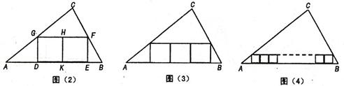 (3)如图(3),三角形内有并排的三个全等的正方形,它们组成的矩形有两个顶点在