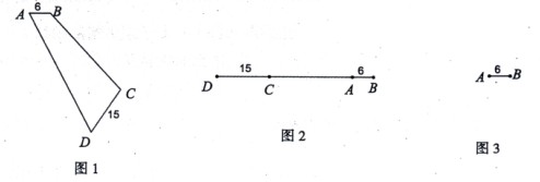 24.如图1,四根长度一定的木条,其中AB=6cm,CD=15cm,将这四根木条用小钉绞合在一起,构成一个四边形ABCD(在A、B、C、D四点处是可以活动的).现固定AB边不动,转动这个四边形,使它的形状改变,在转动的过程中有以下两个特殊位置.