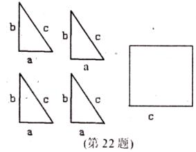 22.(10分)如图是用硬纸板做成的四个全等的直角三角形(两直角边长分别是a、b,斜边长是c)和一个边长为c的正方形,请你将它们拼成一个能证明勾股定理的图形.