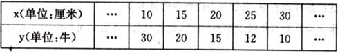 弹簧秤与点O的距离x(单位:厘米),观察弹簧秤的示
