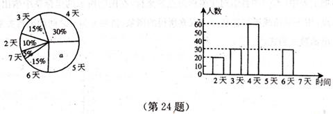 24.(10分)某教育行政部门为了了解八年级学生每学期参加综合实践活动的情况,随机抽样调查了某校八年级学生一个学期参加综合实践活动的天数,并用得到的数据绘制了下面两幅不完整的统计图.