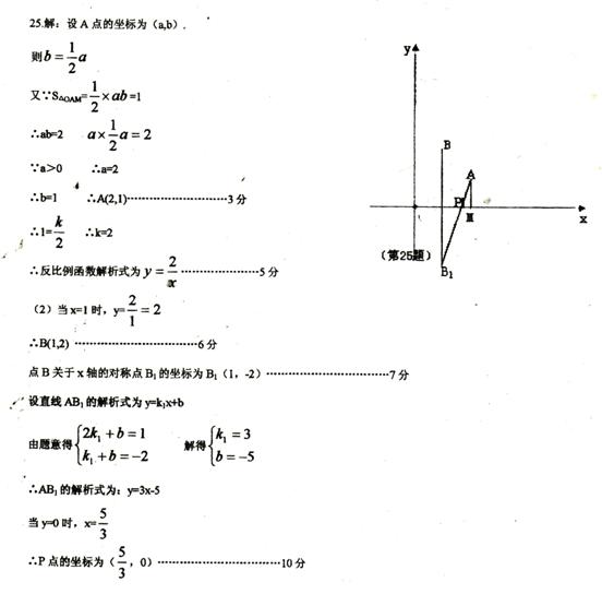 (2)如果B为反比例函数在第一象限图象上的点(B点与A点木重合),且B点的横
