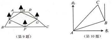 先沿北偏东70°方向走了8千米到达B地,然后再从B地走了6千米到达目的地C,