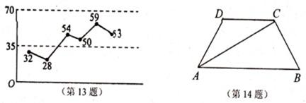 13.一组数据的折线统计图如图所示,这组数据的极差是____________。
