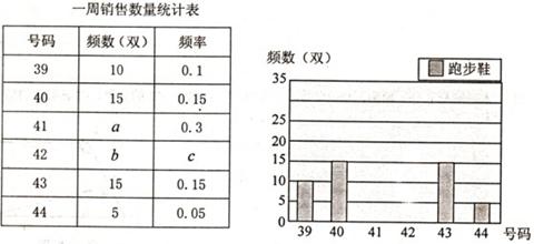 25.(本题满分8分)某百货商场经理对新进某一品牌几种号码的男式跑步鞋的销售情况进行了一周的统计,得到一组数据后,绘制了频数(单位:双)、频率统计表与频数分布直方图如下: