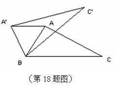 18、如下图,已知:在同一平面内将△ABC绕B点旋转到△A’BC’的位置时,AA’∥BC,∠ABC=70°,则∠CBC’为________度。