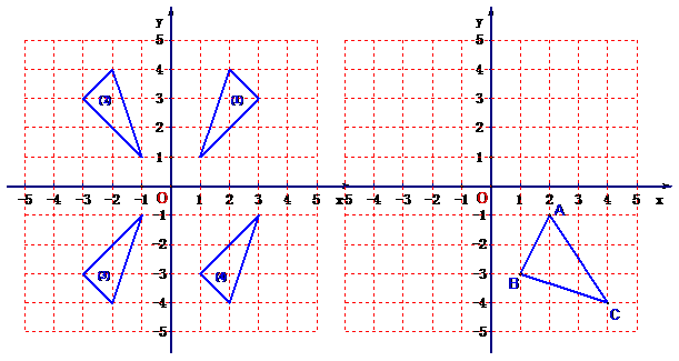 19、(1)在图1所示编号为①、②、③、④的四个三角形中,关于y轴对称的两个三角形的编号为 ;关于X轴对称的两个三角形的编号为 ;(4分)
