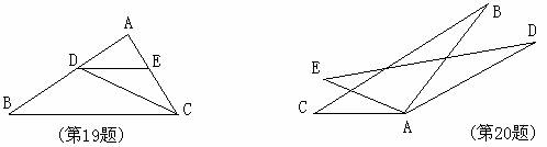 20、如图所示,将△ABC绕其顶点A顺时针旋转20°后得△ADE,则△ABC与△ADE是 关系,且∠BAD的度数为 ;