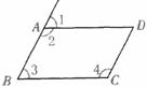 A.∠1+∠2=180° B.∠2+∠3=180° C.∠3+∠4=180° D.∠2+∠4=J80°