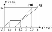小明、小刚两同学从甲地出发骑自行车经同一条路线行驶到相距24千米的乙地,他们行驶的路程S (千米)和行驶时间t(小时)之间的函数关系如图所示,根据图中提供的信息,给出下列说法: