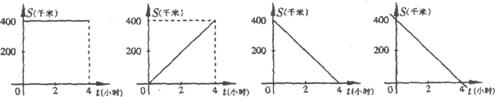 13.汽车由重庆驶往相距400千米的成都.如果汽车的平均速度是100km/h,那么汽车距成都的路程s(km)与行驶时间t(h)的函数关系用图像表示应为 ( )