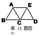 16、如图,△ABC、△ACE、△ECD都是等边三角形,则图中的平行四边形有 。