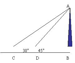 11.如图,河对岸有铁塔AB,在C处测得塔顶A的仰角未30°,向塔前进14m,到达D,在D处测得A的仰角围45°,求铁塔AB的高。