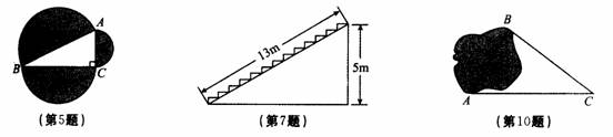 7.如图,在高为5m,坡面长为13m的楼梯表面铺地毯,地毯的长度至少需要 ( ).