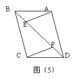 如图(5),已知AB=DC,AD=BC,E、F是DB上两点且BF=DE,若∠AEB=120°,∠ADB=30°,则∠BCF=