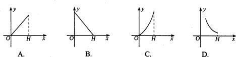 向高为H的圆柱形水杯中注水,已知水杯底面半径为2,那么注水量y与水深x的函数图象是 ( )