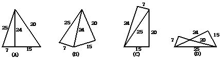 4. 五根小木棒,其长度分别为7,15,20,24,25,现将他们摆成两个直角三角形,其中正确的是( )