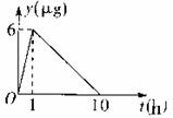 26.(12分)在全国抗击“非典”的斗争中,黄城研究所的医学专家们经过日夜奋战,终于研制出一种治疗非典型肺炎的抗生素.据临床观察,如果成人按规定的剂量注射这种抗生素,注射药液后每毫升血液中的含药量y(μg)与时间t(h)之间的关系近似地满足如图所示的折线.