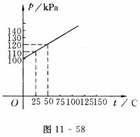 18、科学家通过研究得出:一定质量的某种气体在体积不变的情况下,压强p(kPa)随温度t(℃)变化的函数关系式是p=kt+b,其图象如图11-58所示的直线.
