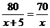 5.甲、乙两班学生参加植树造林,已知甲班每天比乙班多植5棵树,甲班植80棵树所用的天数与乙班植70棵树所用的天数想等,若设甲班每天植树x棵,则根据题意列出的方程是( )