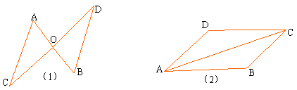 1. 如图(1),如果△AOC ≌ △BOD,则对应边是__________,对应角是_____________;