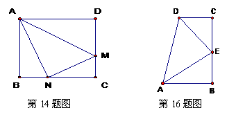 14.如图,沿AM折叠,使D点落在BC上,如果AD=7cm,DM=5cm,∠DAM=30°,则AN=_________cm,∠NAM=_________.