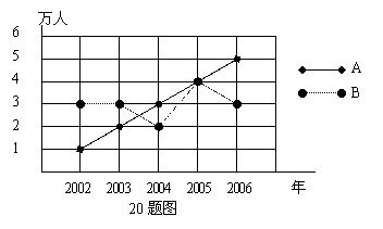 20.如图,A、B两个旅游点从2002年至2006年“五、一”的旅游人数变化情况分别用实线和虚线表示.根据图中所示解答以下问题: