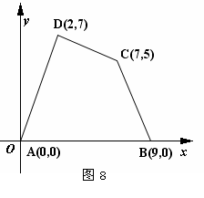 16、如图8所示的直角坐标系中,四边形ABCD各顶点的坐标分别为A(0,0)、B(9,0)、C(7,5)、D(2,7).求四边形ABCD的面积.