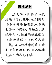 24.(本题满分6分) 小明、小亮和小强三人准备下象棋,他们约定用“抛硬币”的游戏方式来确定哪两个人先下棋,规则如右图: