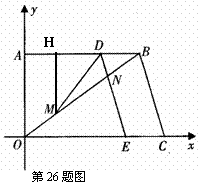如图,在直角梯形OABC中,已知B、C两点的坐标分别为B(8,6)、C(10,0),动点M由原点O出发沿OB方向匀速运动,速度为1单位/秒;同时,线段DE由CB出发沿BA方向匀速运动,速度为1单位/秒,交OB于点N,连接DM,过点M作MH⊥AB于H,设运动时间为t(s)(0<t<8).