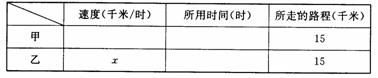 (1)设乙每小时走x千米,根据题意,利用速度、时间、路程之间的关系填写下表。
