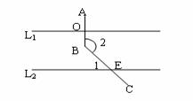 如右图,直线l1∥l2,AB⊥l1,垂足为O,BC与l2相交于点E,若∠1=43°,则∠2=