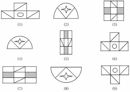 观察下面图形,指出(1)~(9)中的图形有没有与给出的图形(a)、(b)、(c)形状相同的?