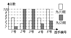 6、(黄冈市2006)某中学开展“八荣八耻”演讲比赛活动,九(1)、九(2)班根据初赛成绩各选出5名选手参加复赛,两个班各选出的5名选手的复赛成绩(满分为100分)如下图所示。