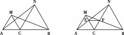 图1、图2中,点C为线段AB上一点,△ACM与△CBN都是等边三角形.