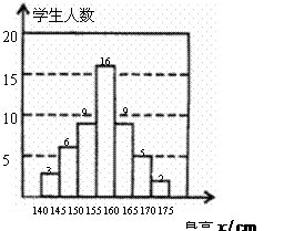 小亮调查本班同学的身高后,将数据绘制成如下图所示的频数分布直方图(每小组数据包含最小值,但不包含最大值.比如,第二小组数据x满足:145≤x<150,其它小组的数据类似).设班上学生身高的平